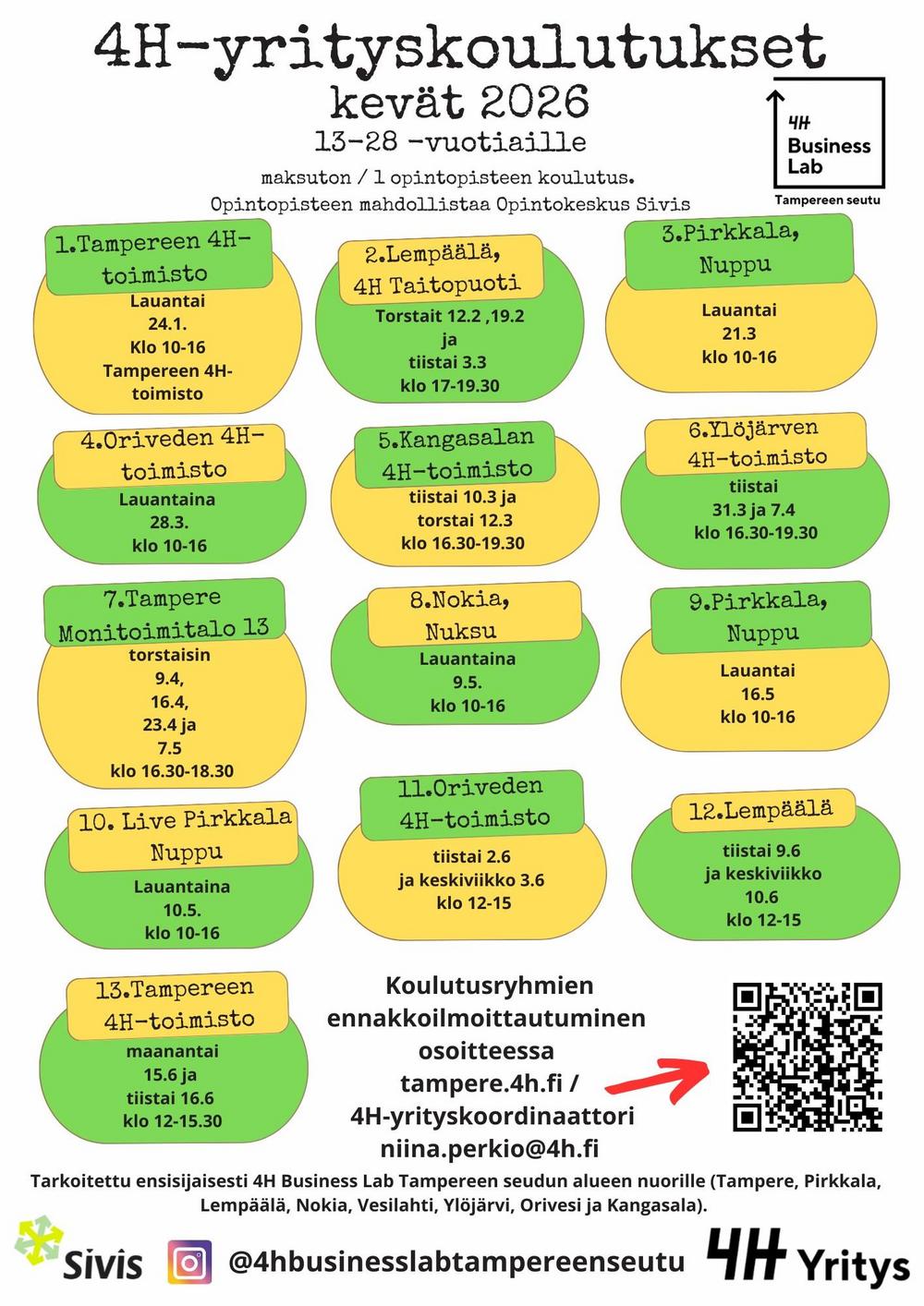 4H-yrityskoulutus järjestetään seuraavan kerran Lempäälässä kolmiosaisena livekoulutuksena. Koulutus pidetään TaitoPuoti 2.0 tiloissa kolmena torstaina: 8.2. , 15.2. ja 22.2. klo 16:30-19:00…